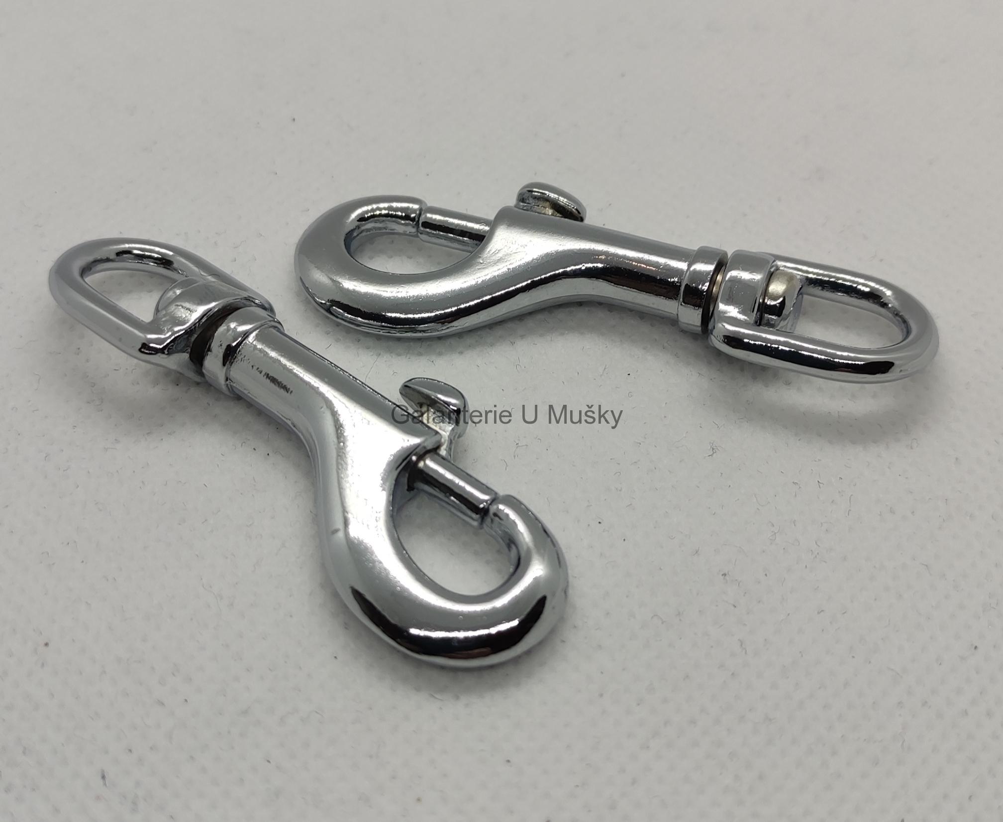 Kovová otočná karabina, průvlek 10 mm, délka 61 mm, pochromovaný zinek, cena za 1 ks
