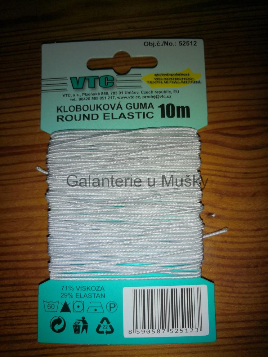 Kulatá guma o průměru 1,2 mm, tažnost 120-130 %, návin 10 m. Český výrobek, cena za kartu.