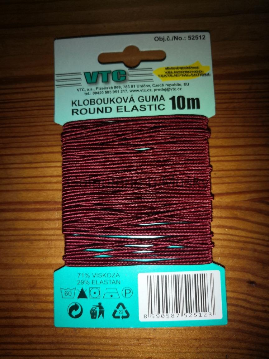 Kulatá guma o průměru 1,2 mm, tažnost 120-130 %, návin 10 m. Český výrobek, cena za kartu.