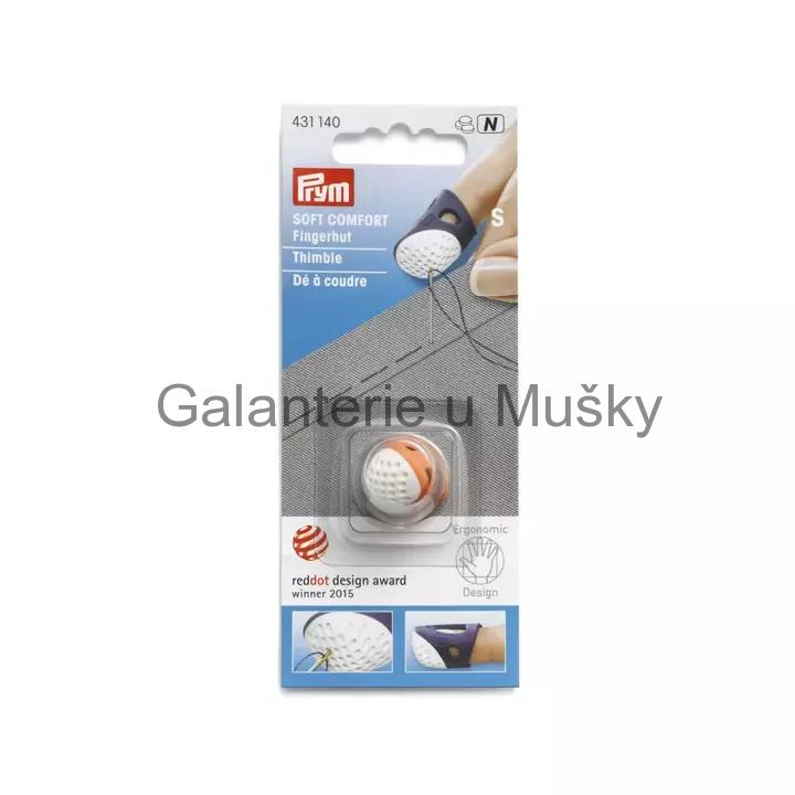 Elastický náprstek SOFT COMFORT, ergonomické provedení, pracovní plocha je opatřena důlky pro bezpečné a neklouzavé opření jehly. Výběr ze 4 velikostí - S,M, L a XL. Německý výrobek, cena za 1 ks.