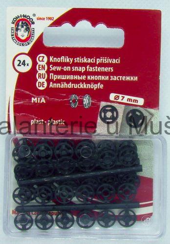 Přišívací plastové body patenty MIA, vel.1/2 (7mm), 24 ks v krabičce. Český výrobek, cena za 1 krabičku.