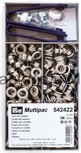 Mosazné průchodky s podložkou, průměr 8 mm, 200 ks v balení - multipac, nikl, s návodem a příslušenstvím. Možné aplikovat pomocí přiloženého přípravku a kladívka, kleští Vario 39448 nebo trojnožky 39458. Německý výrobek, cena za 1 balení.