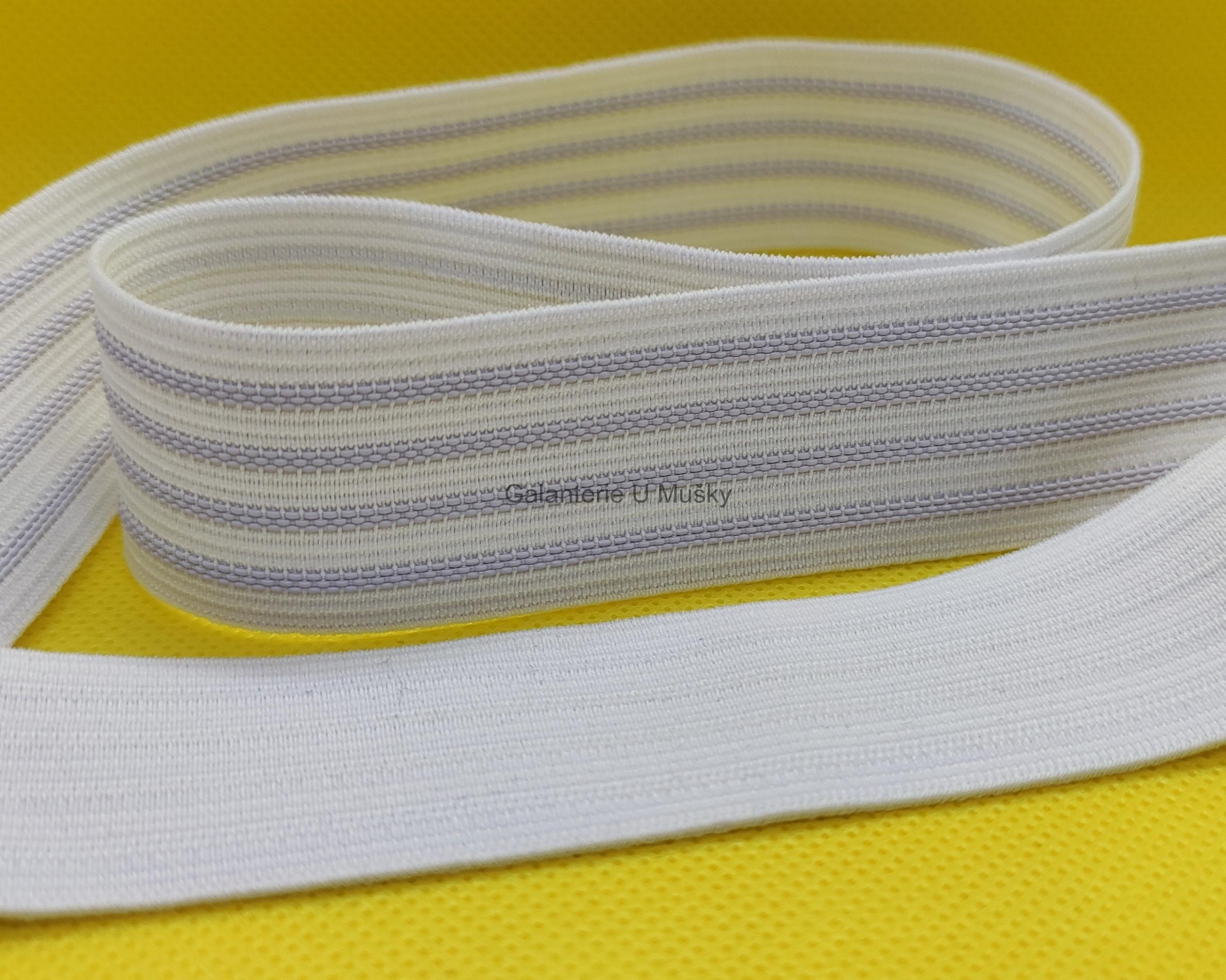 Plochá pruženka s protiskluzovou úpravou, šířka 25 mm, návin 25 m, tažnost 170%. Český výrobek, cena za 1 m.