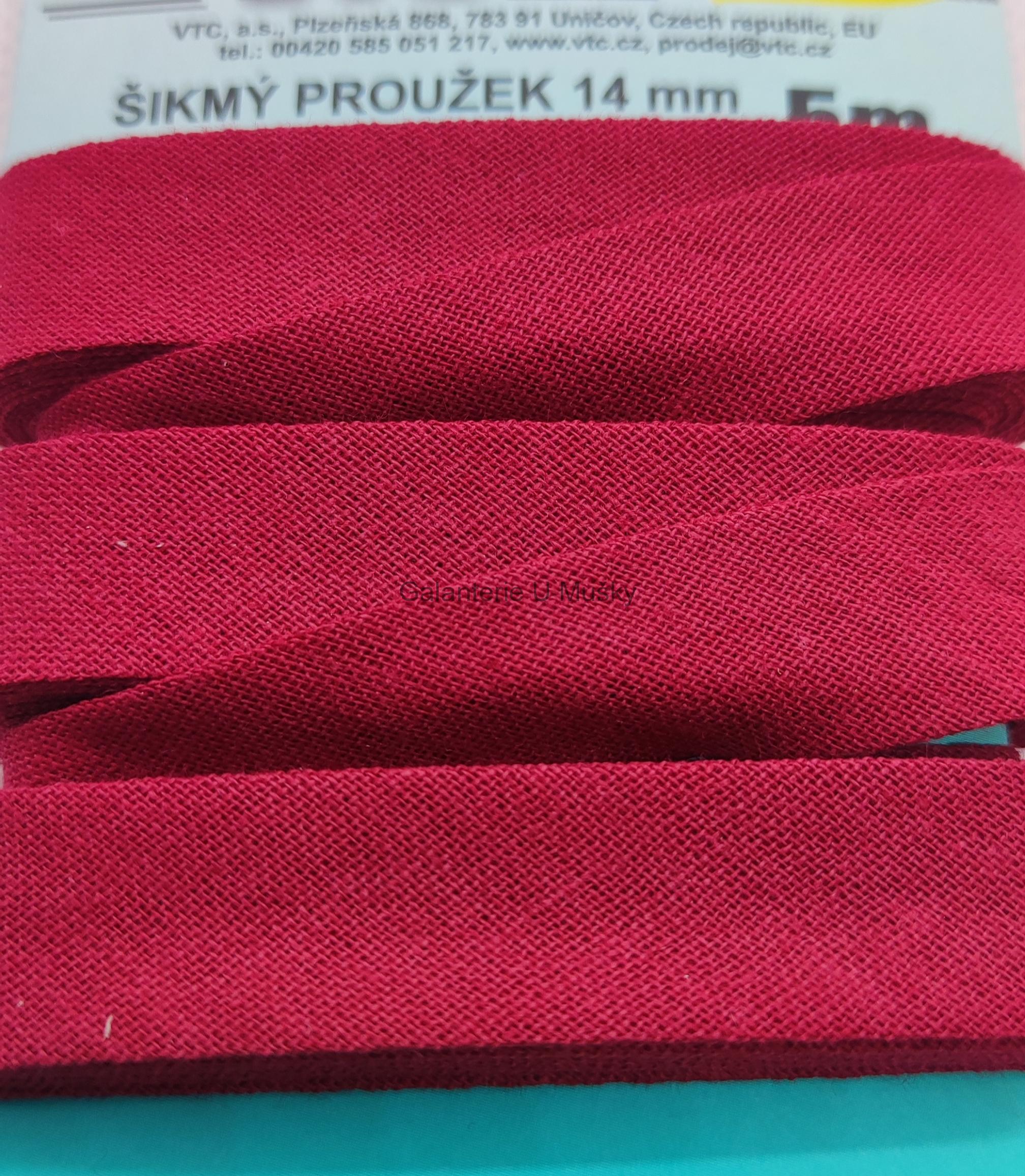 Šikmý proužek 14 mm karta 5 m 100% bavlna - 09 - 300641 - vínová