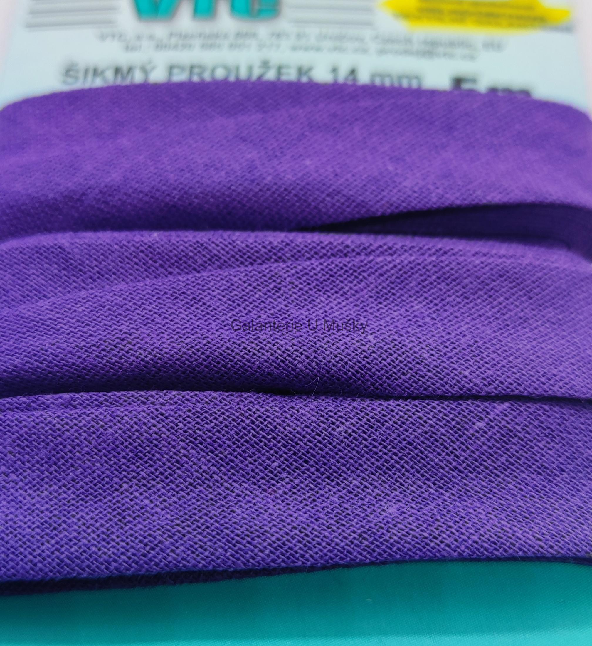 Šikmý proužek 14 mm karta 5 m 100% bavlna - 11 - 400223 - tmavě fialová