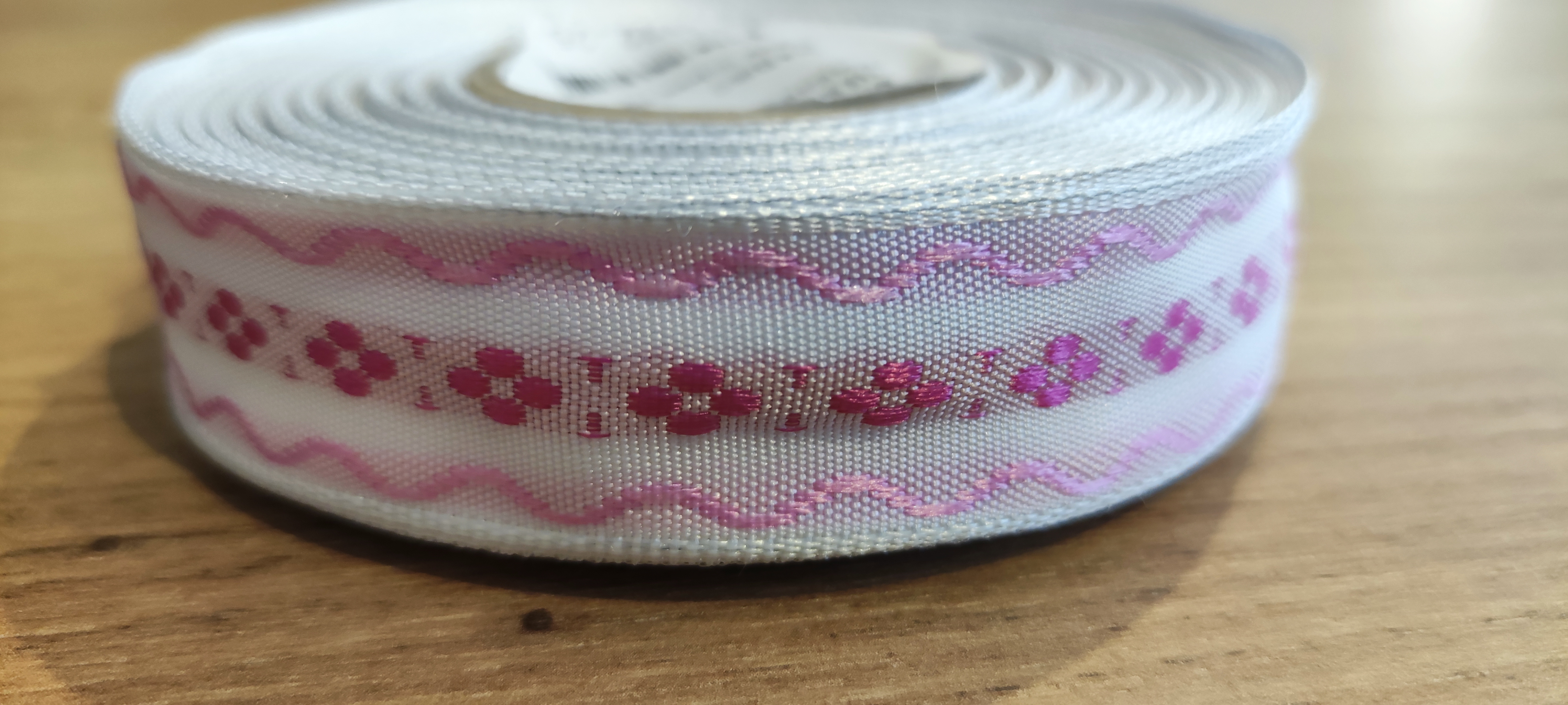 Stuha plátnová se vzorem a drátem, šířka 25 mm, návin 25 m. Český výrobek, cena za 1 m.