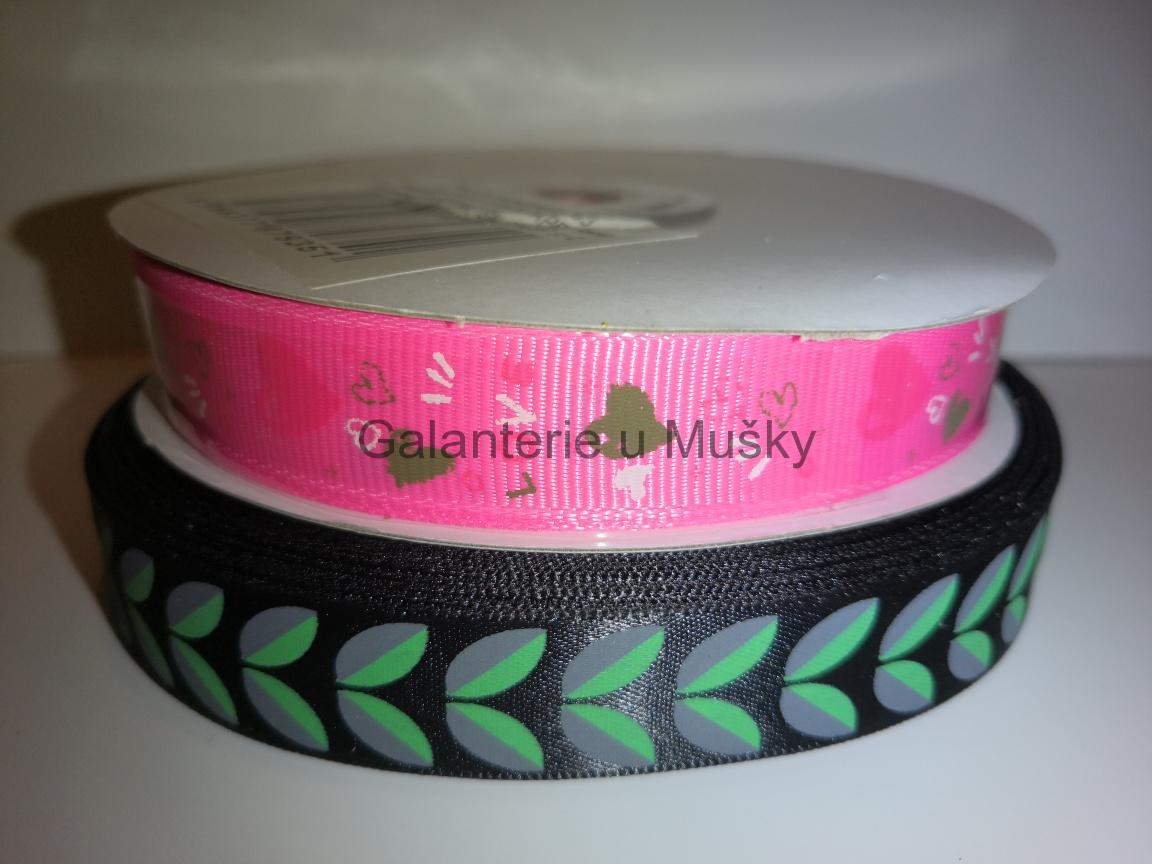 Stuha rypsová s tiskem 15mm černá s lístky