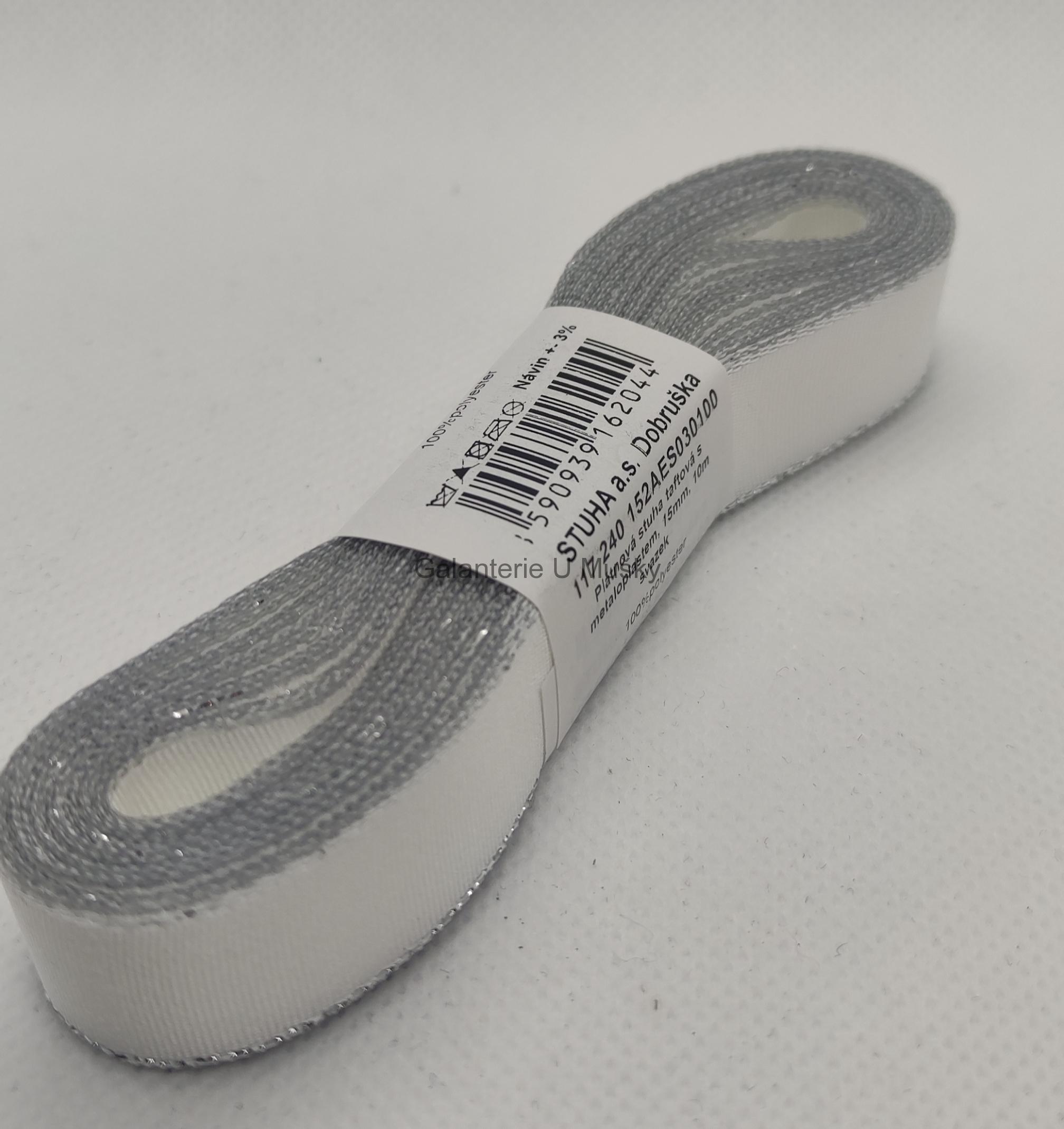Stuha taftová 15 mm s rexorem - 100-2 - bílá+stříbro - 10mskladem 1 ks25 CZK/ ks