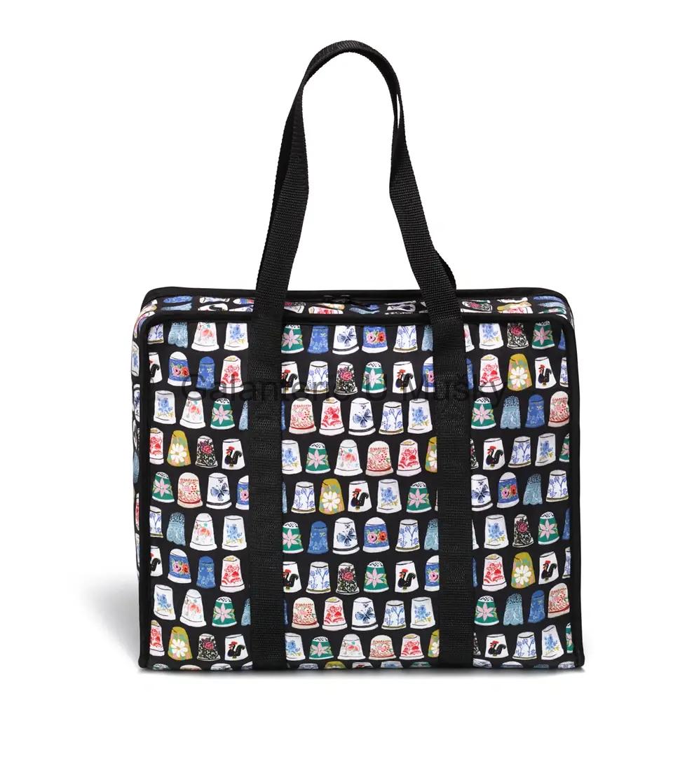 Univerzální látková taška na ukládání nebo transport šicích a pletacích pomůcek - 8 vnitřních průhledných kapes, 12 elastických oček a pevná ucha. Rozměry 34x26x9,5 cm. Filipínský výrobek, cena za 1 ks.